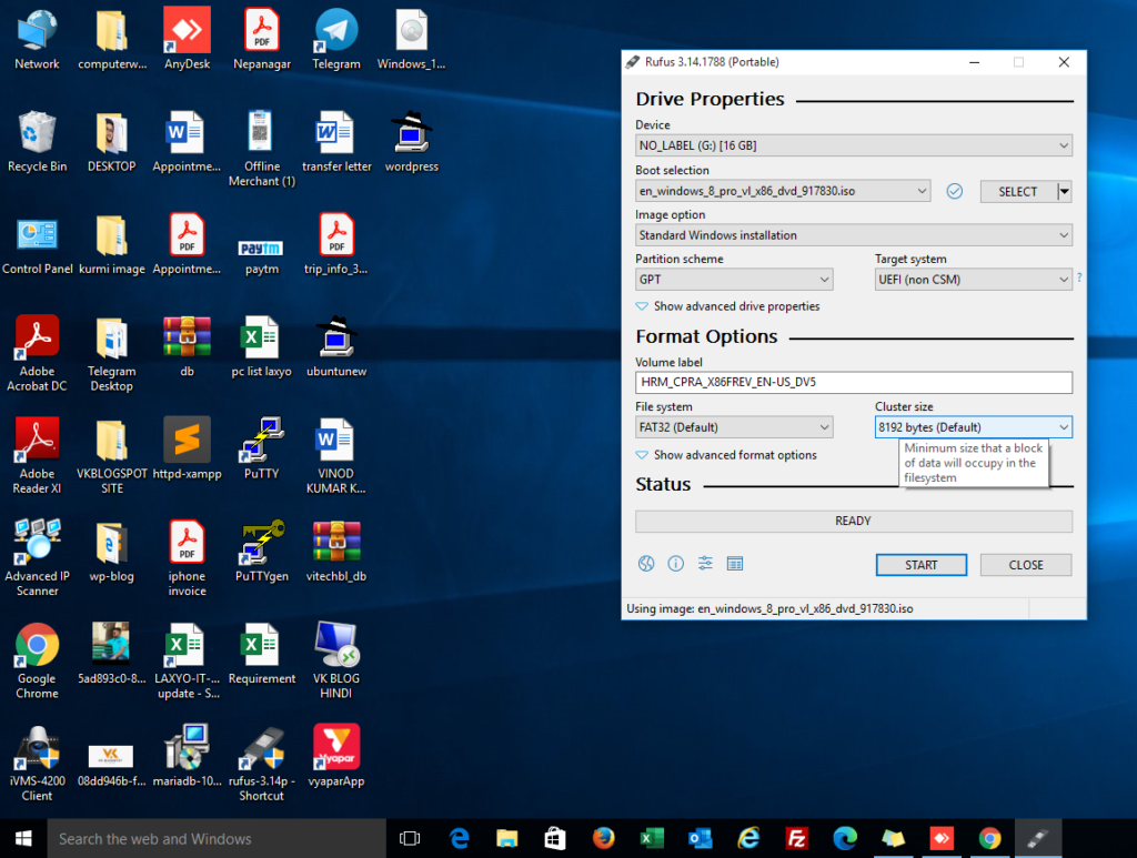 6. Lastly, click on “Start” and wait for the software to create the bootable USB PenDrive.
